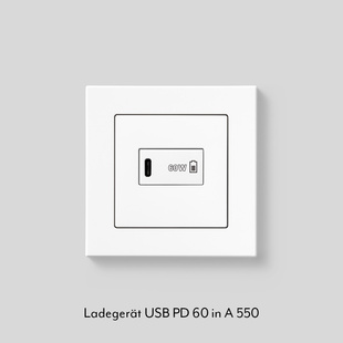 Ab Anfang 2026 sind USB-C-Anschlüsse für alle neuen Geräte Pflicht. JUNG bietet mit dem Ladegerät USB PD 60 eine platzsparende Lösung zum Laden von Akkus mit bis zu 60 Watt mit USB-C Port. Die Ladegeräte sind mit den Serien A, CD und LS kompatibel.